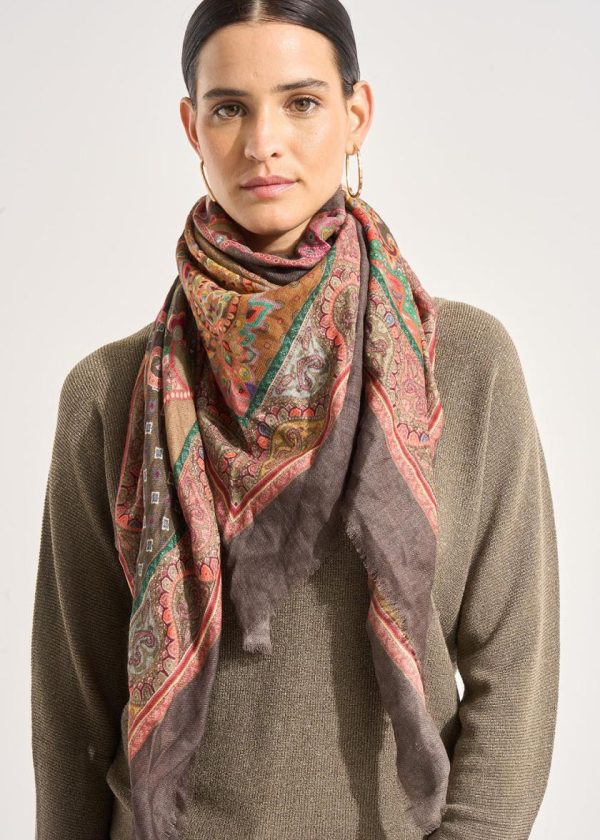 Le foulard imprimé à motifs EDMA, coloré, apporte une touche vibrante et dynamique à votre tenue, en alliant style et élégance.
