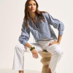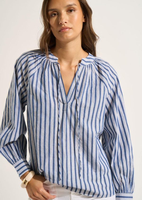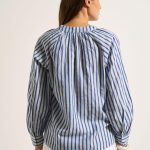 La blouse TOBY allie légèreté et détails lumineux dans une coupe ample et fluide. Ses rayures rehaussées d’un discret fil lurex lui donnent une touche d’éclat subtile. Son col tunisien à liens et ses manches raglan froncées apportent confort et élégance décontractée. Parfaite à porter rentrée dans un pantalon ou fluide sur un denim.