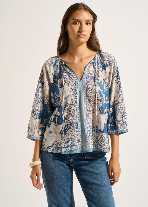 Chemises, Blouses & Tops Femme | Sud Express Blouse Ample Imprimée à Manches Légèrement Bouffantes INDIGO TAPHNEA