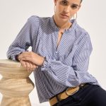 Chemises, Blouses & Tops Femme | Sud Express Blouse Ample Rayée En Coton Avec Encolure Tunisienne MARINE TONIMO