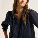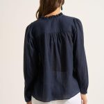 Chemises, Blouses & Tops Femme | Sud Express Blouse En Gaze De Coton MARINE TONNY