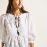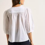 - Manches 3/4 avec broderies travaillées sur le plastron