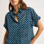 Chemises, Blouses & Tops Femme | Sud Express Chemise Imprimée En Coton à Manches Courtes BLEU CIBALT