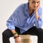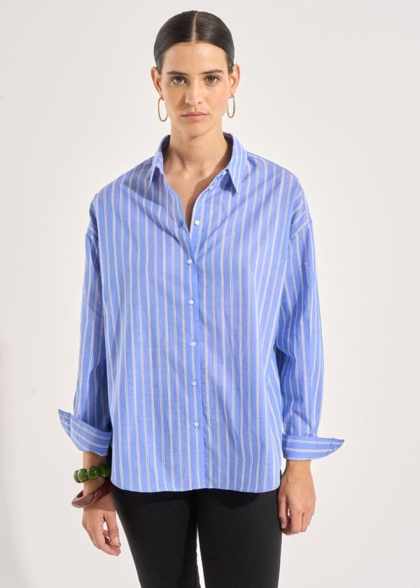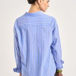 Légère, ample et rayée, la chemise COZOULI est une invitation au confort tout en élégance. Confectionnée dans un voile de coton doux et respirant, elle affiche une coupe oversize moderne rehaussée par des emmanchures tombantes. Ses rayures bleues apportent une touche graphique discrète, tandis que les poignets larges structurent la silhouette avec style.