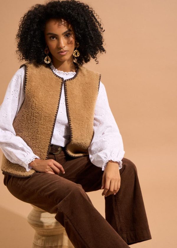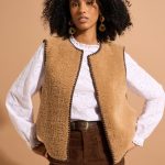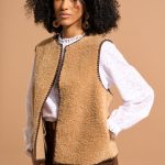 Le gilet GIRA en fausse fourrure est une pièce élégante et chic, sans manches. Il se distingue par son col rond délicat, orné de broderies raffinées sur le col, à l’avant, ainsi qu’aux manches et au bas du vêtement. Ce gilet apporte une touche d’élégance à votre tenue tout en offrant chaleur et confort.
