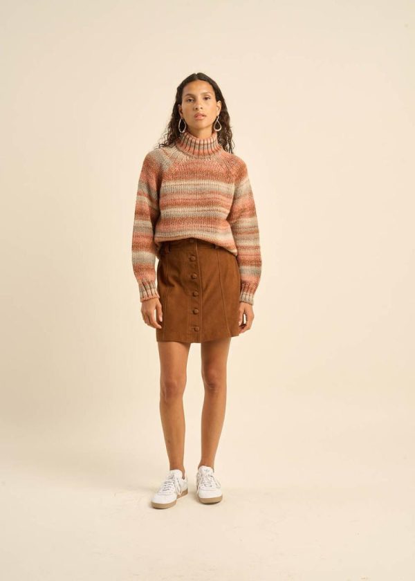 La jupe JASPERA, un basique revisité. Sa coupe courte et sa matière en cuir de chèvre lui donnent un esprit rock chic. L’ouverture boutonnée ajoute une touche d’originalité à cette pièce intemporelle. Le jeu de surpiqûres créent un contrastes irrésistible.