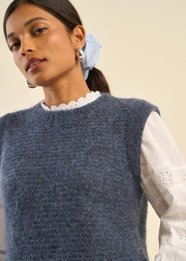Le pull sans manches en mélange mohair et alpaga MOTANA est une véritable caresse de douceur et de style. Ses mancherons tricotés et son encolure ronde en font une pièce idéale pour superposer avec élégance vos chemises classiques. Les bords côtes à l’encolure et au bas ajoutent une touche de finition élégante. Disponible en trois coloris, il apportera une note féminine et chic à votre garde-robe.