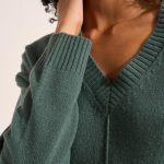 - Finitions en larges bords-côtes au bas des manches et du corps