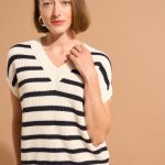 Pulls Femme | Sud Express Pull Sans Manches Ample à Rayures Marines En Coton Et Laine