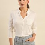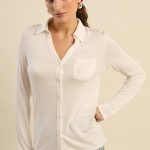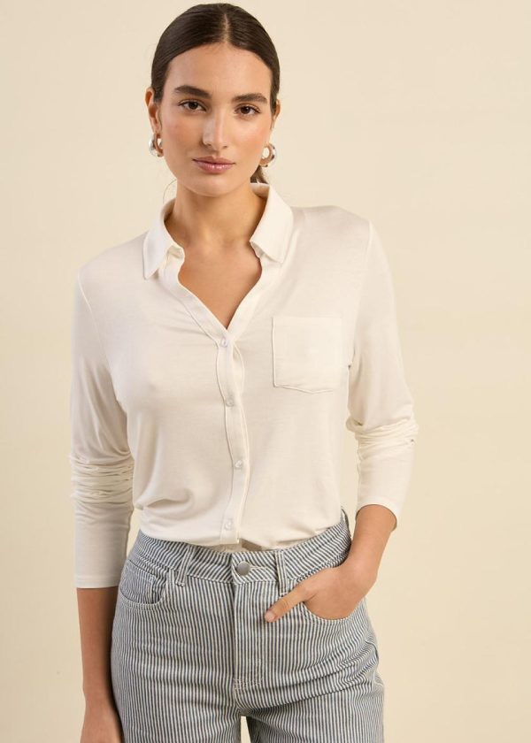 T-shirts & Débardeurs Femme | Sud Express T-shirt Col Chemise Manches Longues ECRU CHIARA
