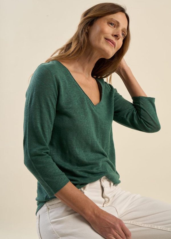 T-shirts & Débardeurs Femme | Sud Express Tee-shirt En Lin VERT FORET TOMEOH
