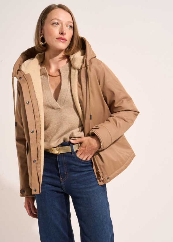 La veste VISTANA associe technicité et confort avec sa matière déperlante effet peau de pêche et sa doublure intérieure en fausse fourrure. Sa coupe ample et sa capuche enveloppante en font une pièce idéale pour affronter l’hiver avec style.